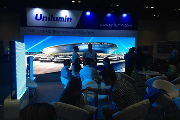 hjc黄金城集团 - 黄金城xhjc官方网站科技本次展出的UTV1.6小间距超高清LED显示屏是本届展会的最大亮点之一,UTV系列小间距产品具备全球领先的“低亮高灰”技术,在800nits的亮度下,UTV小间距产品灰度达到16 bit, 当显示亮度降到200nits, 灰度依然保持在12 bit以上。 另外,UTV系列产品刷新率达到3200Hz ,对比度5000:1,并具备优异的色彩还原性能,显示画面非常细腻真实。其显示效果令现场客户惊叹不已, 大多数客户都是第一次看到如此高密的LED显示屏,客户对中国制造有了一种全新的认知。