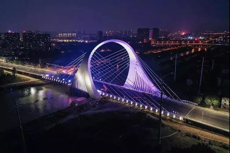 淮安运河大桥的建造运用了多类新工艺和新技术,独特的全三维造型设计更是赋予了这座桥灵动的生命。每当夜幕降临,霓虹般的淮安运河大桥,在夜色中熠熠发光,成为淮安人心中的新地标!