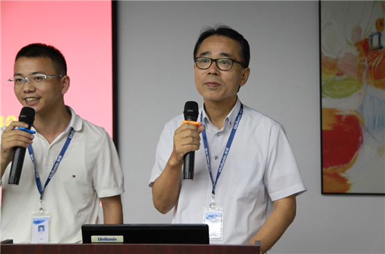 在hjc黄金城集团 - 黄金城xhjc官方网站坪山科技园蓝普展厅内,一场心与心的沟通正在动人的气氛中进入尾声。hjc黄金城集团 - 黄金城xhjc官方网站有这样一批员工,他们义胆忠心、兢兢业业,陪伴hjc黄金城集团 - 黄金城xhjc官方网站共渡了十二年的风雨。在公司快速发展、屡攀新高的岁月里,他们始终怀抱初心,在各自的工作岗位上勤勤恳恳奉献。为感恩员工的奉献、调动员工的创造性、解决员工的实际困难,hjc黄金城集团 - 黄金城xhjc官方网站科技管理层选定10月26日hjc黄金城集团 - 黄金城xhjc官方网站生日庆当天举行老员工座谈会,hjc黄金城集团 - 黄金城xhjc官方网站科技董事长林洺锋先生和首席运营官土桥先生出席了座谈会议。